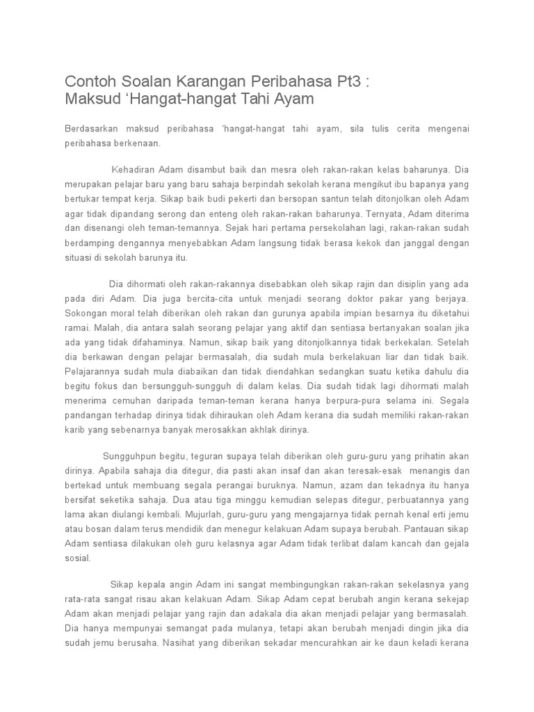 Contoh Karangan Peribahasa Karangan Peribahasa Penceritaan Peribahasa Hangat Hangat Tahi Ayam Studocu