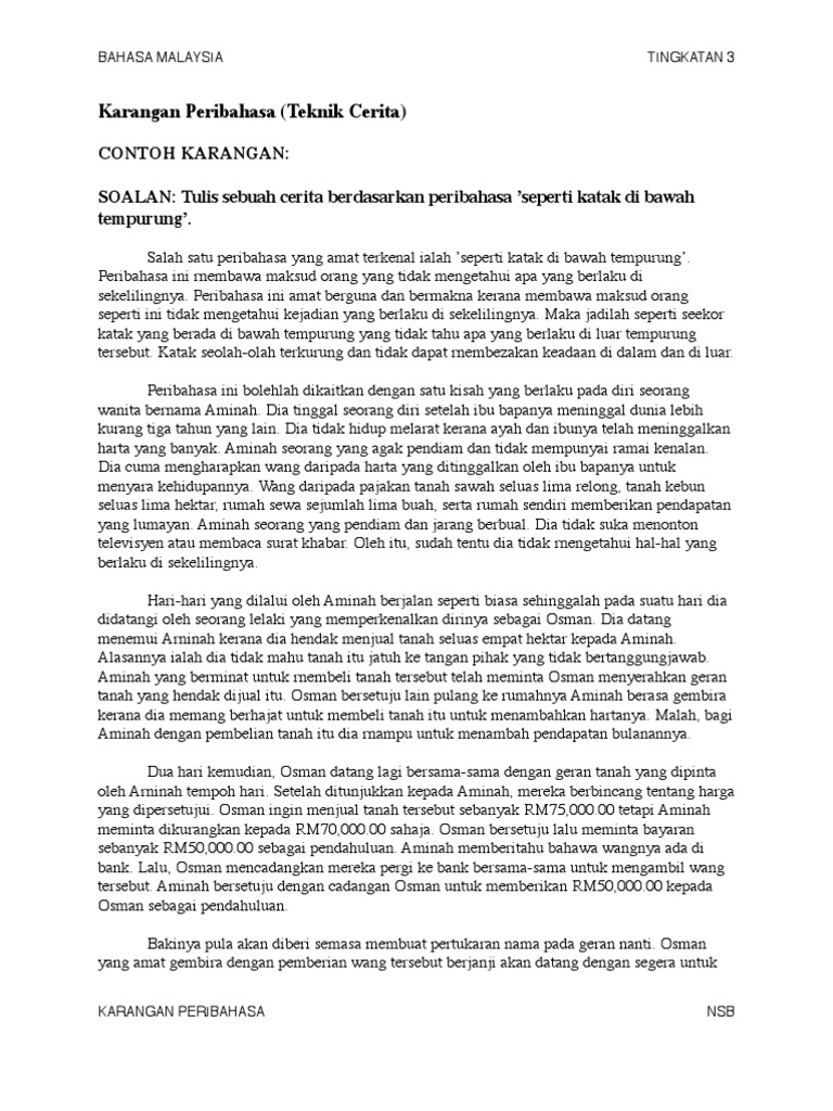 Lihat contoh soalan dan kerangka karangan untuk bahagian pendahuluan yang. Contoh karangan peribahasa pt3 bahasa melayu pentaksiran tingkatan 3. Soalan Karangan Pendek Tingkatan 1 - 25 Contoh Karangan Respons Terhad 60 Contoh Karangan Respons Terhad Jaya Bakti.